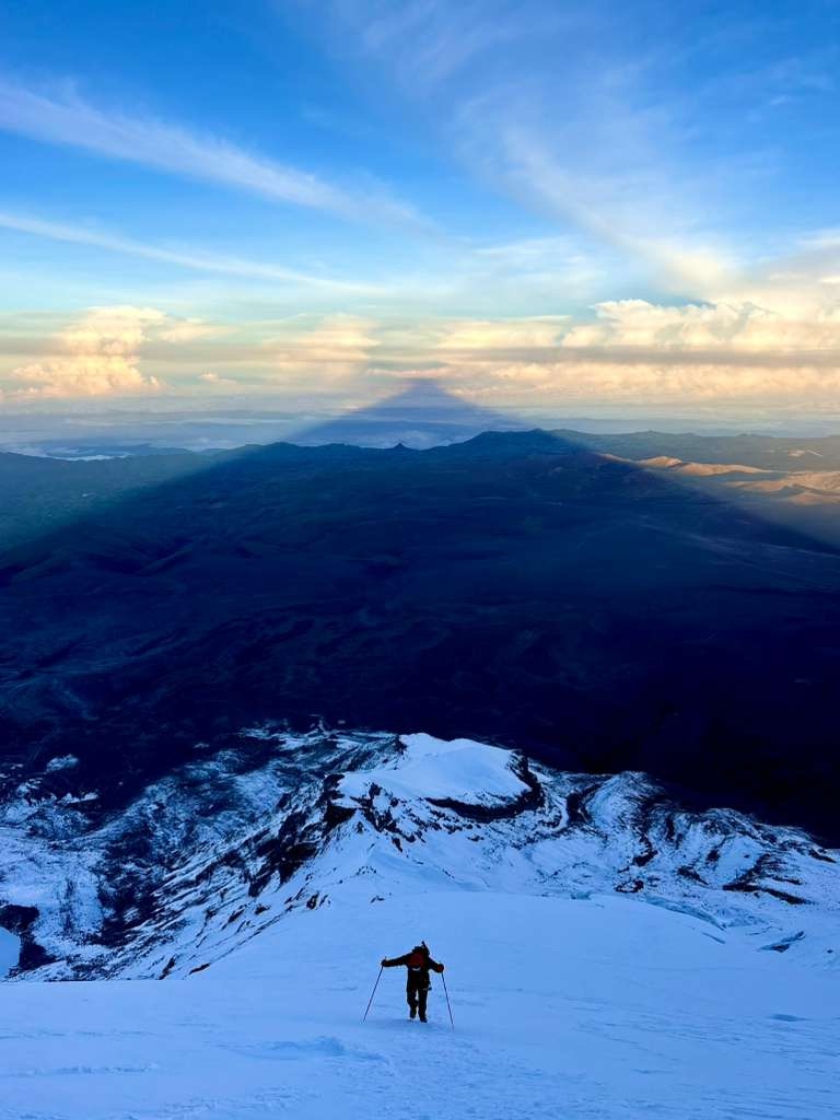 “Llevábamos tiempo queriendo escalar el Chimborazo, pero las condiciones no habían sido las mejores en las últimas semanas debido a la gran cantidad de nieve y avalanchas. Finalmente, tuvimos una ventana y resultó ser un hermoso día en la montaña. Éramos los únicos allí arriba, salvo algunas personas que regresaban por mal de altura y un par de personas en el campamento de altura”, relató.